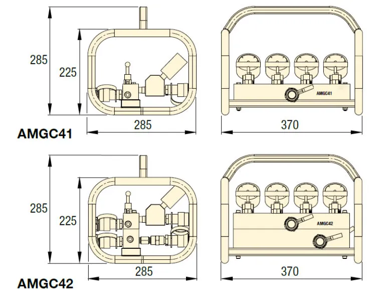 AMGC产品系列:工业工具采用符合人体工学的坚固设计,便于携带且使用便捷,开箱即用。所有接口均配备CR400内螺纹接头,可快速连接多达4个气瓶。4个甘油填充式压力表(10,000 psi/700 bar)确保操作安全。整体结构由坚固防护框架保护。