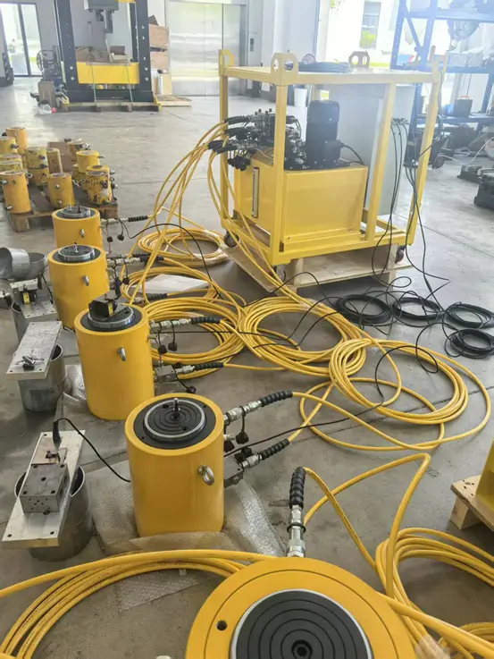 ◆功能配置:传感器参数设置、 预顶升压力设置、超载报警设 置、 传感器丢失报警、超差报警、 预顶升 / 同步顶 / 同步落功能 面板式接口,油管、位移传感器、 油缸接口标识清晰