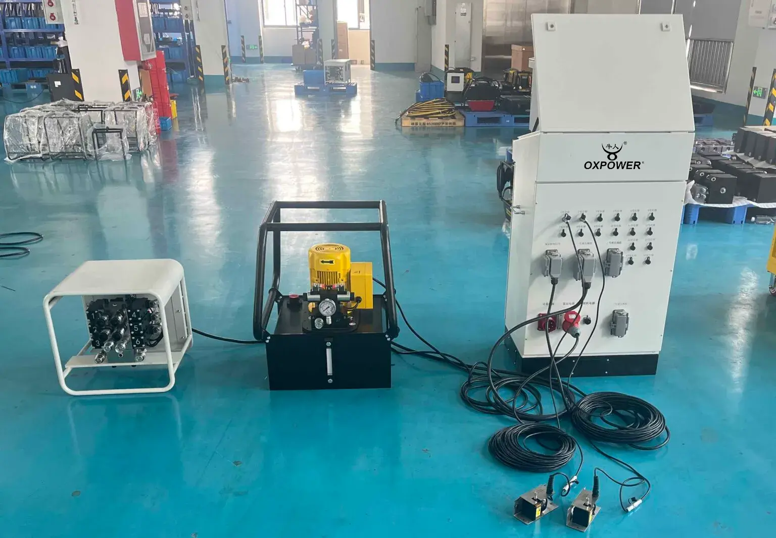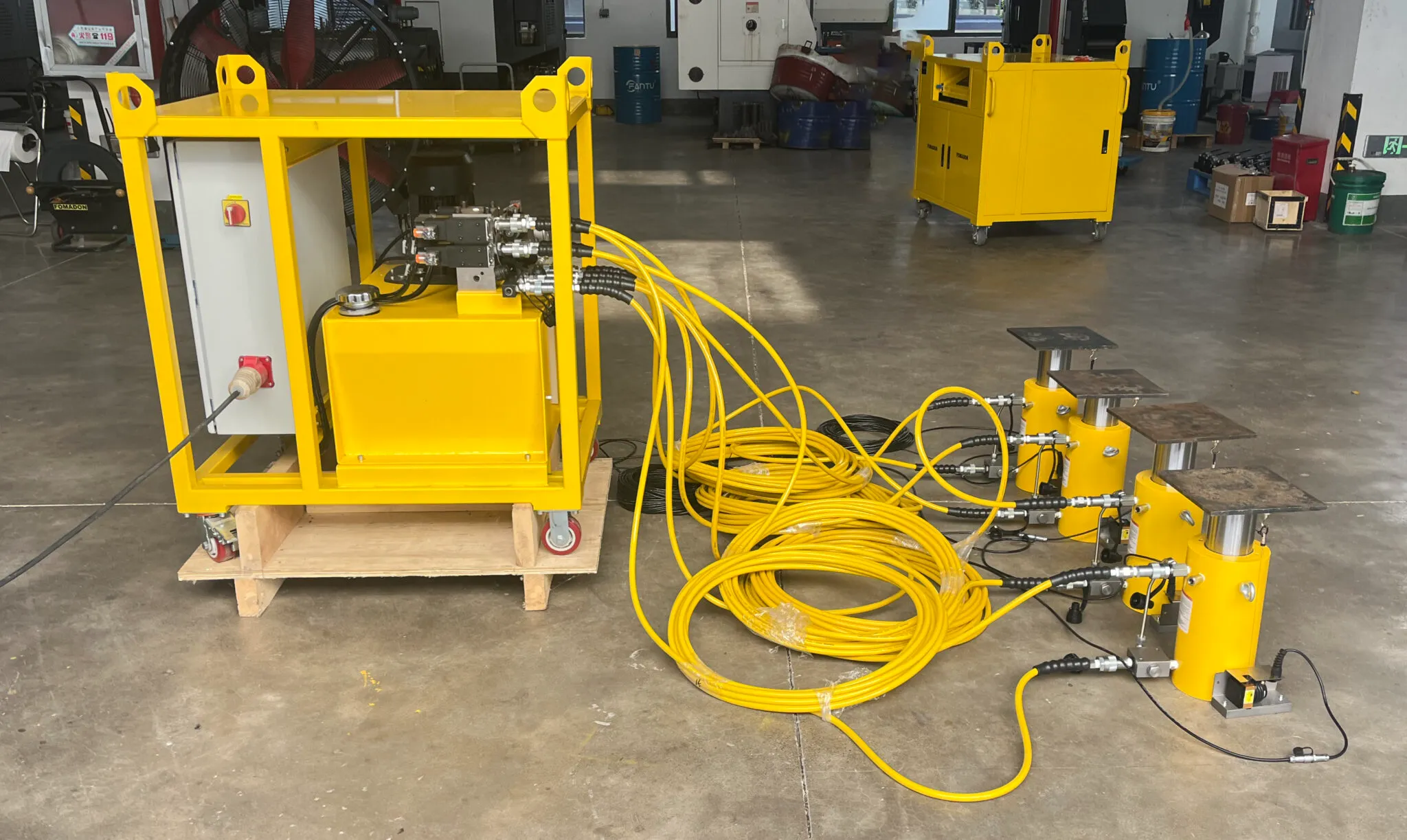 - 功能配置:传感器参数设定、预升压力设定、超载报警设定、传感器丢失报警、超差报警、预升/同步升降功能面板接口、油管、位移传感器、油缸接口清晰标识
