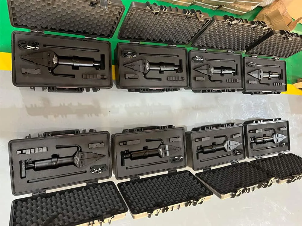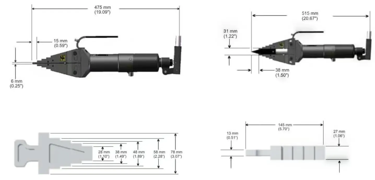 | 型号 | 容量/吨 | 最大展宽/mm | 尖端间隙/ mm | 颚宽/mm | 油容量/cm3 | 动力 | 重量/公斤 |