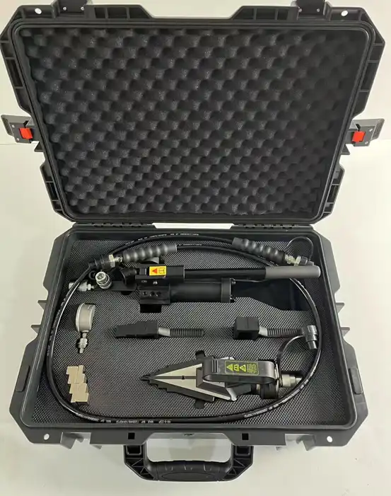 SWi2025TESTDSPB 标准法兰扩张器套件包括扩张器楔头、液压缸、液压手动泵、软管和安全块。扩张器适合 0.24 英寸(6 毫米)的间隙。